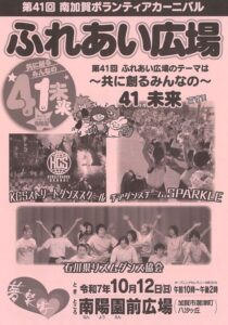 第41回ふれあい広場 2025年10月12日2025年11月11日ふれあい広場のあゆみ プログラムチラシ 詳細はこちら 第41回のテーマ 共に創る みんなの41(よい)未来 地域全体で共生社会を築く意識を高め、未来へ向けて力を合わせる決意を表すテーマです。 テーマロゴはこちら