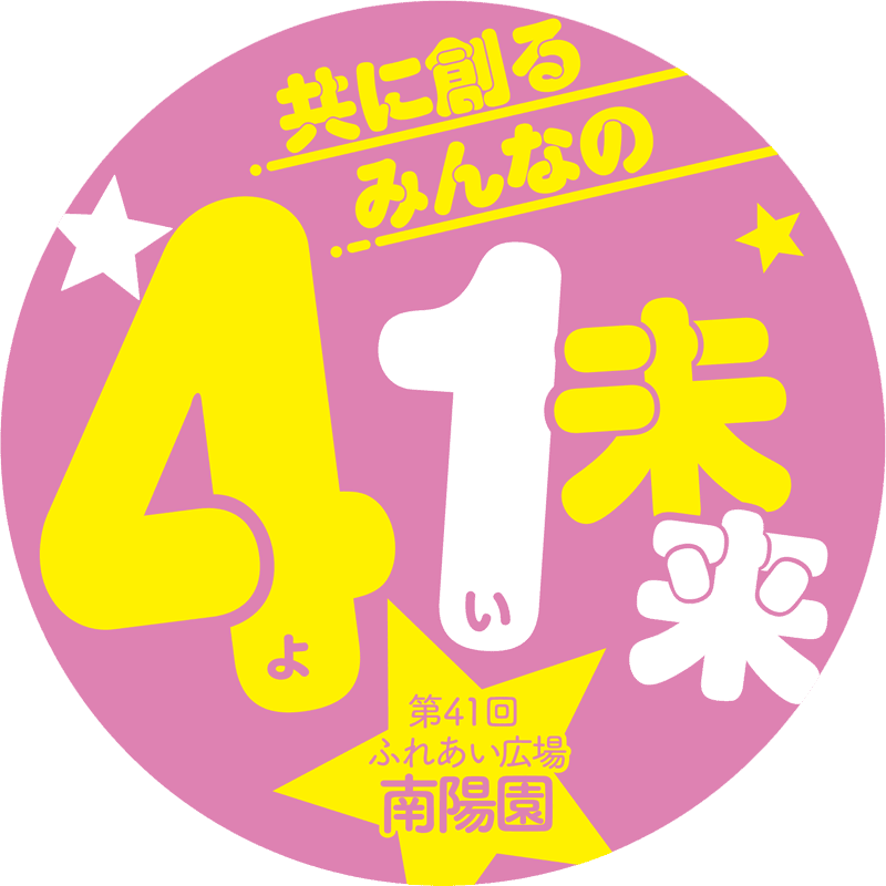 第41回ふれあい広場テーマロゴ 2025年10月12日2025年11月11日テーマロゴ 第41回ふれあい広場テーマ 共に創る みんなの41(よい)未来 地域全体で共生社会を築く意識を高め、未来へ向けて力を合わせる決意を表すテーマです。